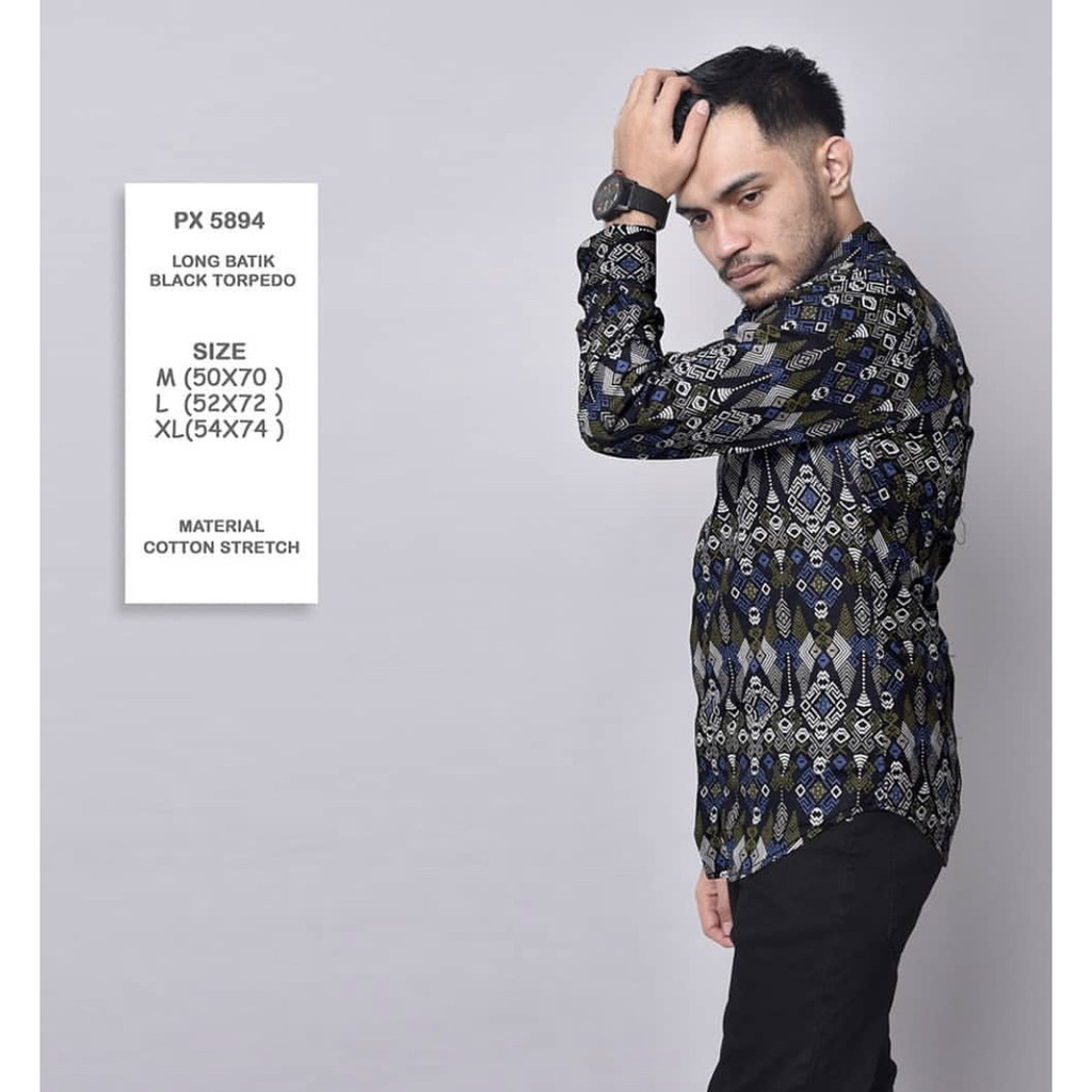 Name: Babedo Kemeja Batik Slimfit Pria Motif Black Torpedo Lengan Panjang Premium