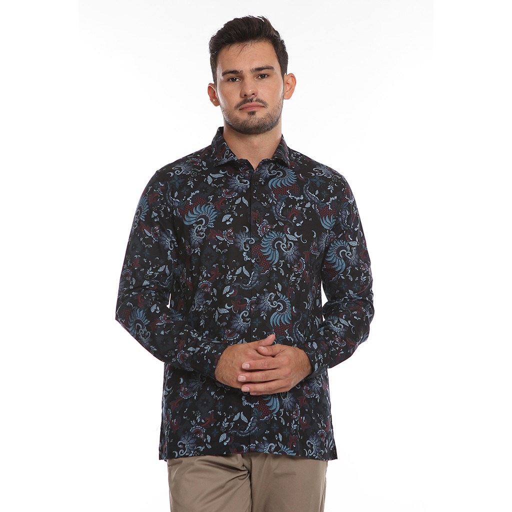Distributor Pakaian di Kabupaten Lombok Timur Manzone Kemeja Batik Pria Lengan Panjang Modern Fit Binawa 5-bestbuy-black dari Manzone Kota Jakarta Selatan