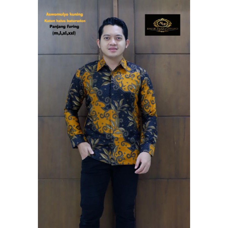 Name: Aswomulyo Kuning Kunyit Kemeja Batik Pria Lengan Panjang Full Furing Katun Halus Batu Raden
